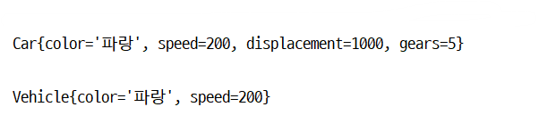 System.out.println("Vehicle{" + "color='" + color + '\'' + ", speed=" + speed + '}');