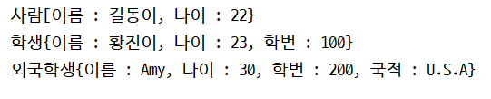 Person[] person = { new Person("길동이", 22), new Student("황진이", 23, 100)