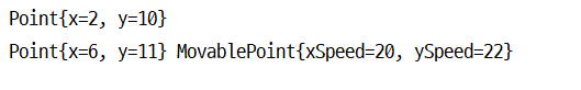 03. 다음 표를 참고해 MovablePoint, MovalPoint의 부모 클래스인 Point를 작성하라. Point 클래스의 toString() 메서드는 좌표를 나타내는 문자열이며, MovablePoint 클래스의 toString() 메서드는 좌표와 이동 속도를 나타내는 문자열을 반환한다.