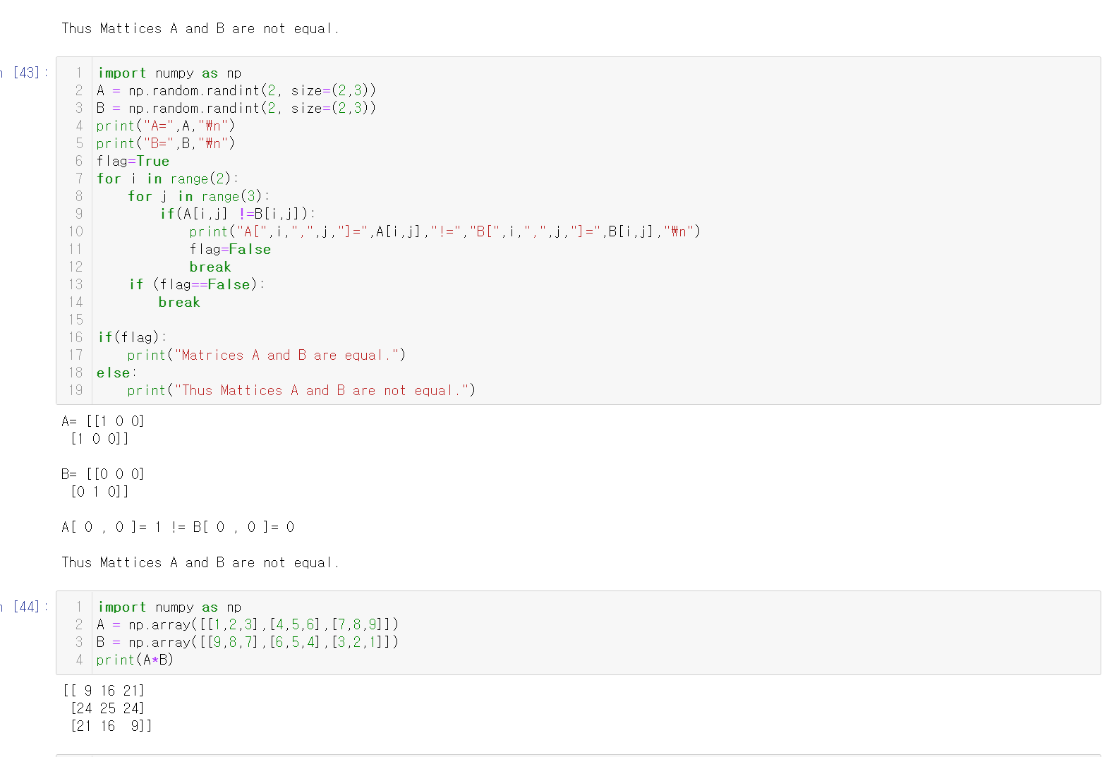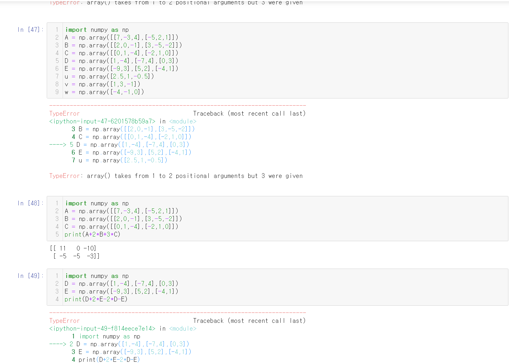 같은 크기의 행렬만 연산법칙에 성립하는데 다른 행렬까지 계산해서 오류가 났음.