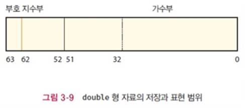 double형 : 32비트가 부호부(1), 지수부(11), 가수부(52)으로 나뉘어져 있음.