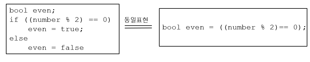 bool even = ((number % 2) == 0) -> even이 참일려면 (number % 2) == 0 이여야 한다.
