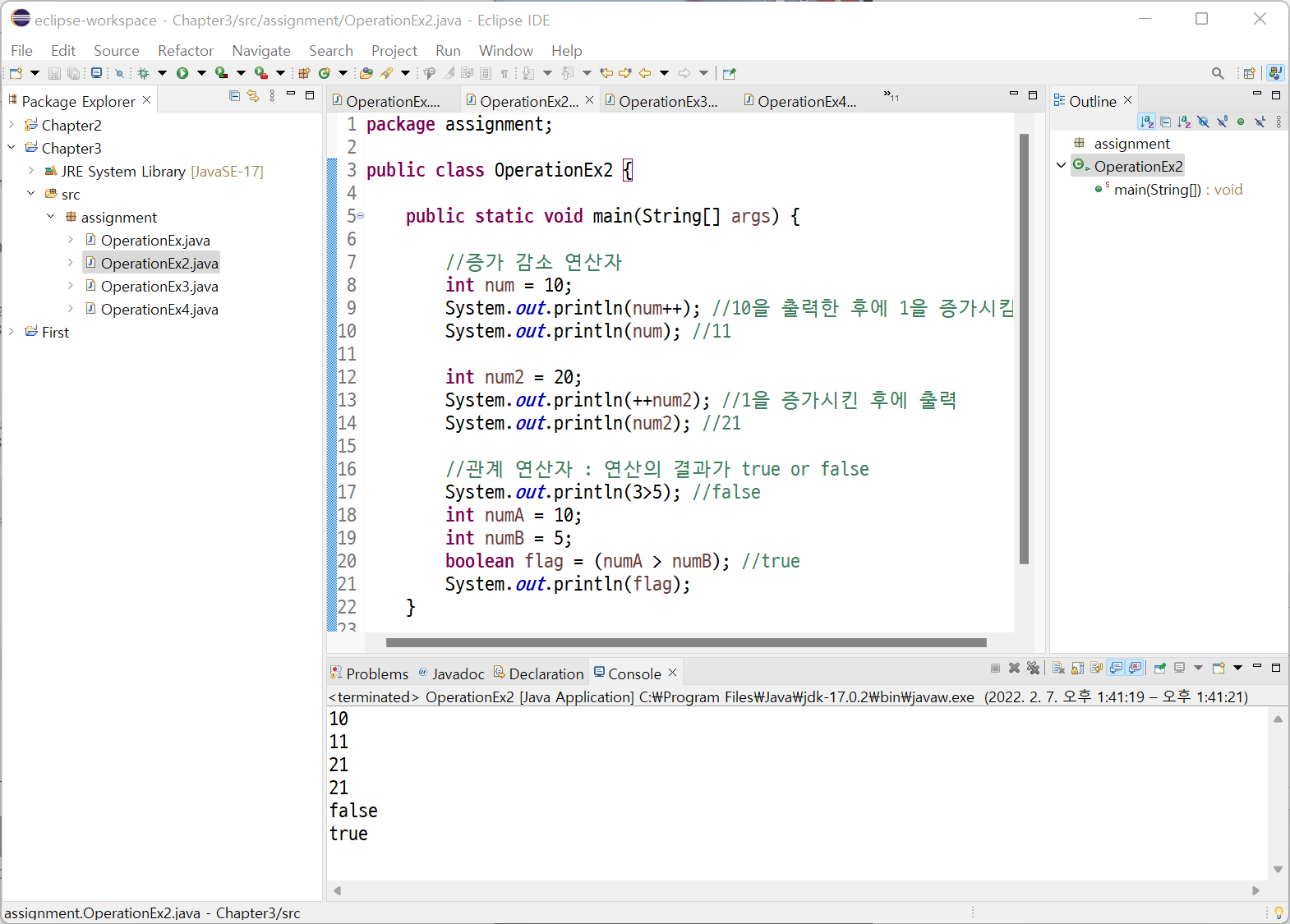📍증감 연산자 (increment and decrement operator), 관계 연산자 (relational operator)