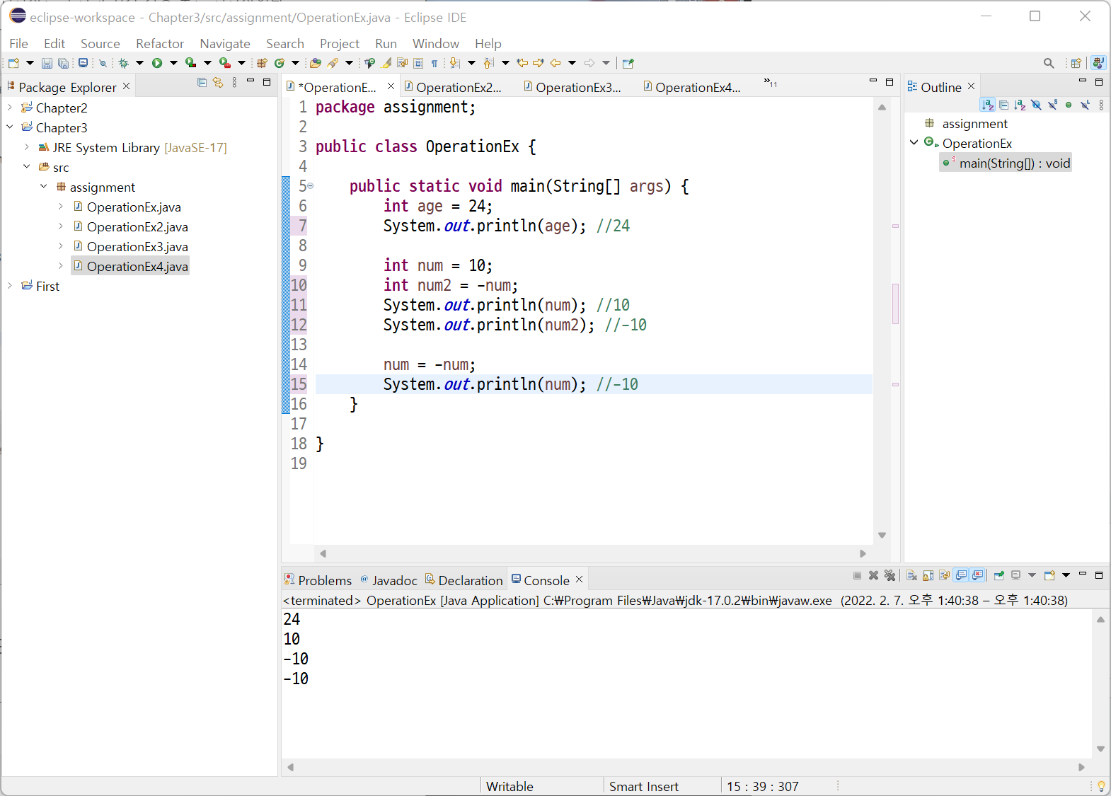 ✖️부호 연산자 : 단항 연산자로 양수/음수의 표현이다. 값의 부호를 결정한다.