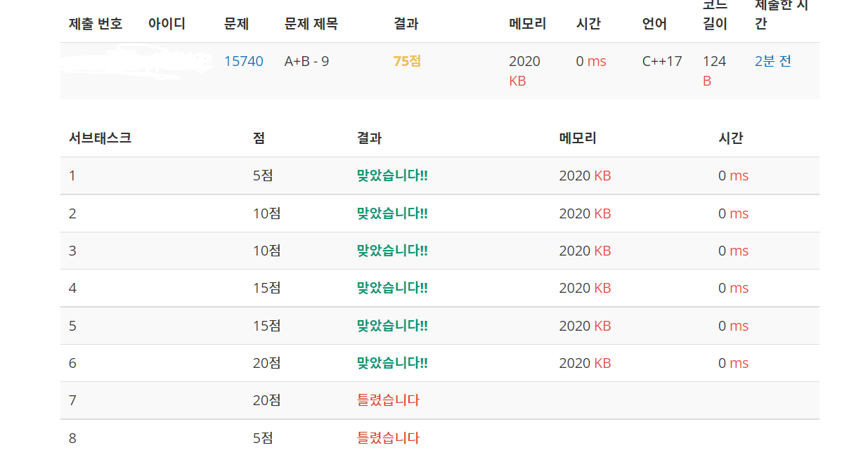 (long long을 했는데도 불구하고 30점이 나오길래 무엇이 문제인지 생각했다. 알고보니, a와 b에만 long long int를 선언하고 c는 int형으로 둔 것이 문제였다. 다음엔 이런 실수를 하지 않도록 하자)