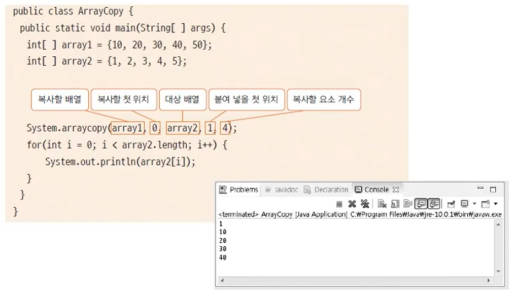 기존 배열과 같은 배열을 만들거나 배열이 꽉 찬 경우 더 큰 배열을 만들고 기존 배열 자료를 복사할 수 있다.