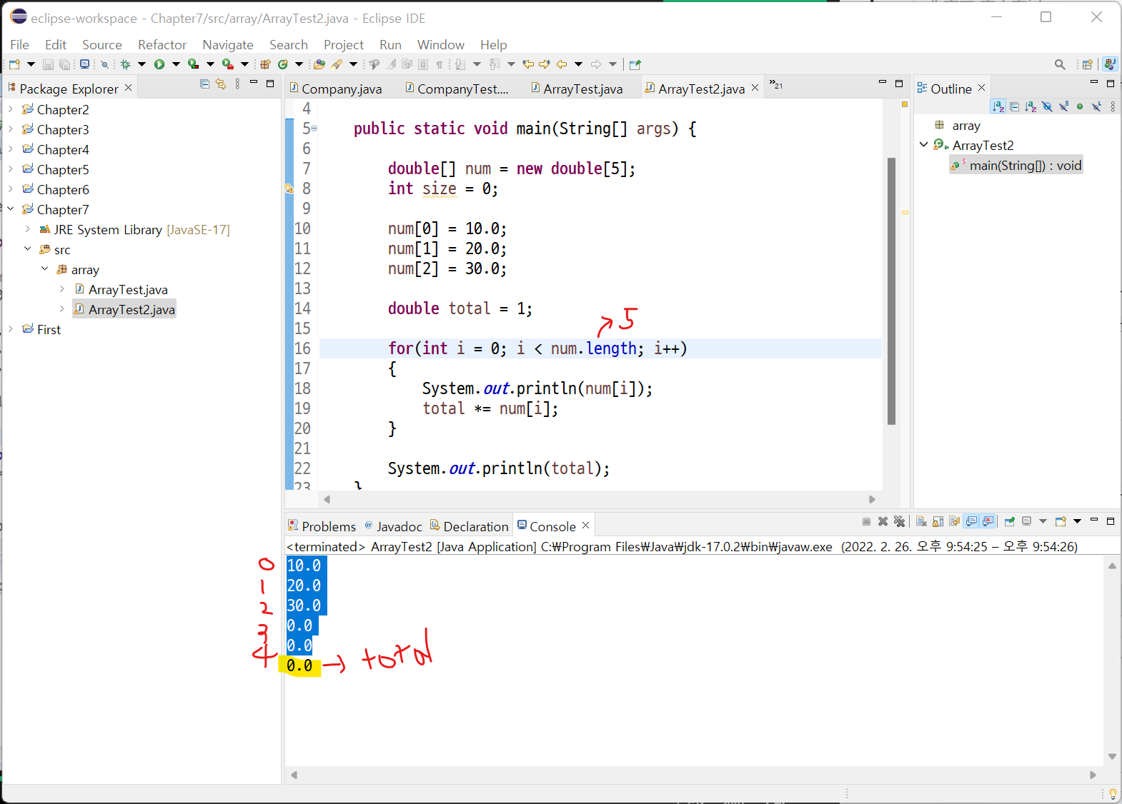 [배열의 길이를 num.length로 한다면 값이 0이 나오는 문제가 생김]