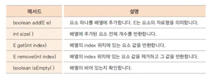 ArrayList<E> 배열이름 = new ArrayList<E>();
