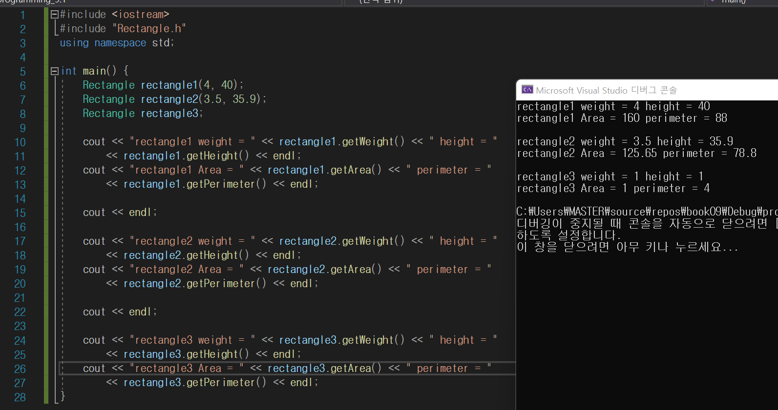 cout << "rectangle1 Area = " << rectangle1.getArea() << " perimeter = "