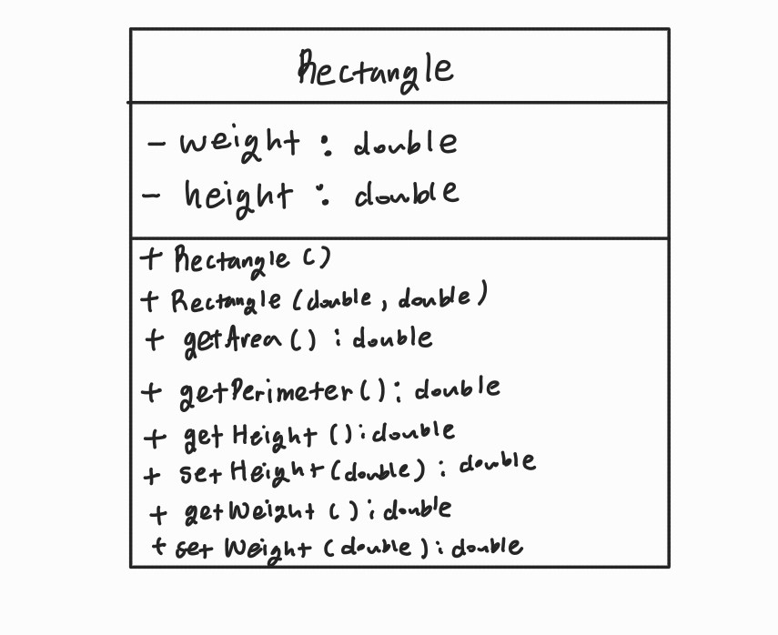 - 직사각형의 폭과 높이를 나타내는 width와 hieght라는 이름의 double 데이터 필드