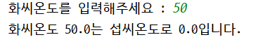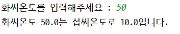 System.out.println("화씨온도 " + f + "는 섭씨온도로 " + c + "입니다.");